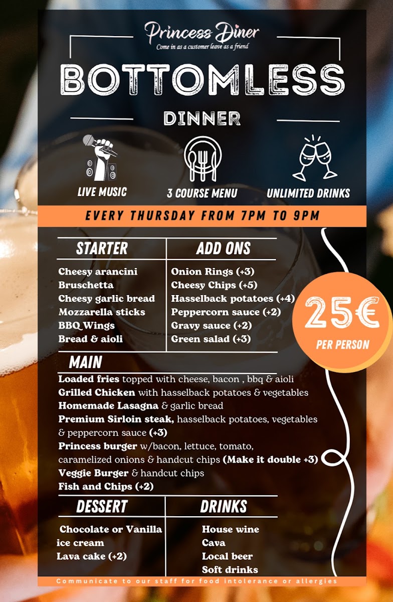 The menu at Princess Di's Cabaret Bar offers a casual and approachable selection designed to complement the lively evening atmosphere. You'll find a mix of simple, comforting dishes alongside a variety of well-crafted drinks that fit perfectly with the bar’s friendly, entertainment-focused vibe.